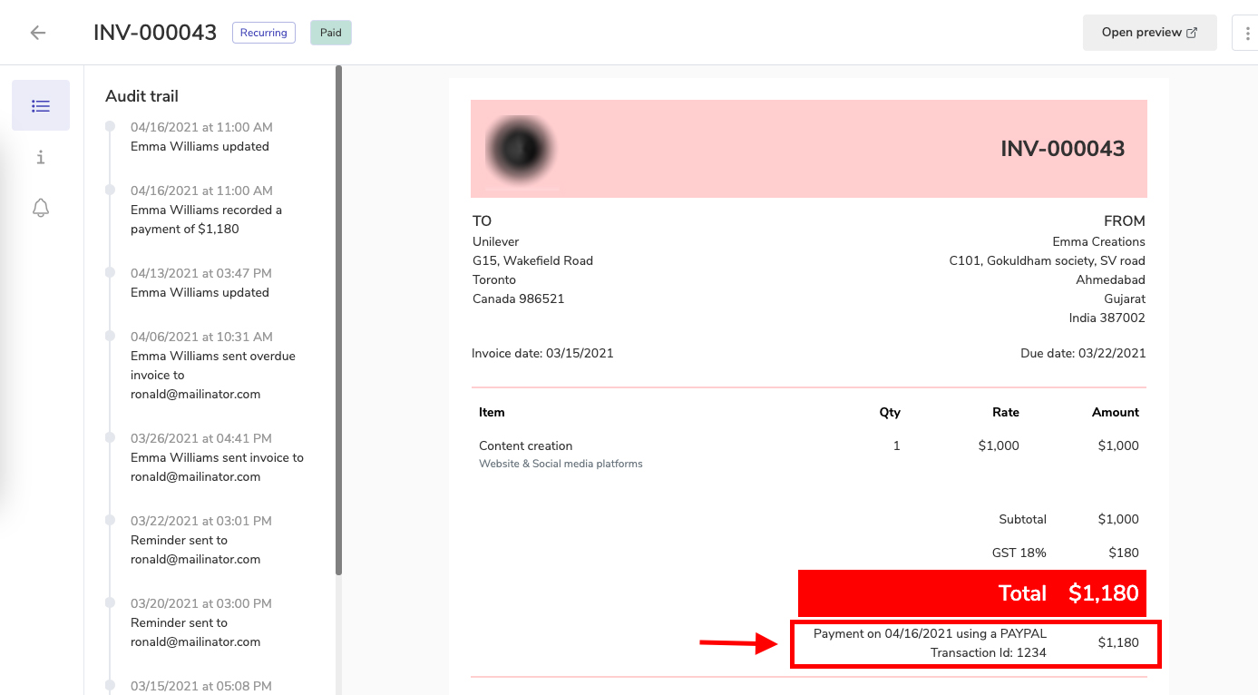 Audit Trail | Know what happened with your Invoice